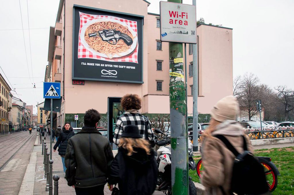 Avec des ouvertures de magasin à Milan et Rome, la marque se lance ainsi en 2020 dans le format spectaculaire à nos côtés. Depuis, DEFI Italie à la plaisir de collaborer régulièrement avec Propaganda sur différents supports à travers les rues de Milan et Rome. Ce sont, chaque fois, d’excellentes opportunités pour la marque italienne d’exploser en couleur et en style pour mettre en avant ses collections, partenariats ou simplement son nom.